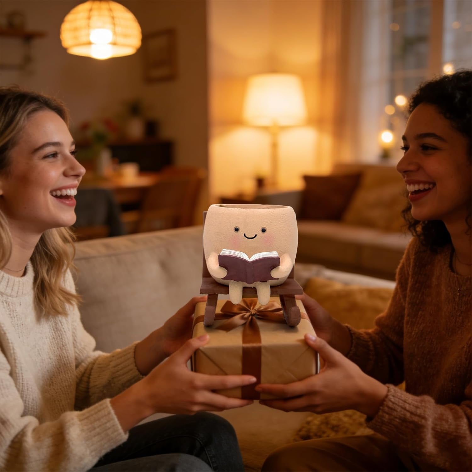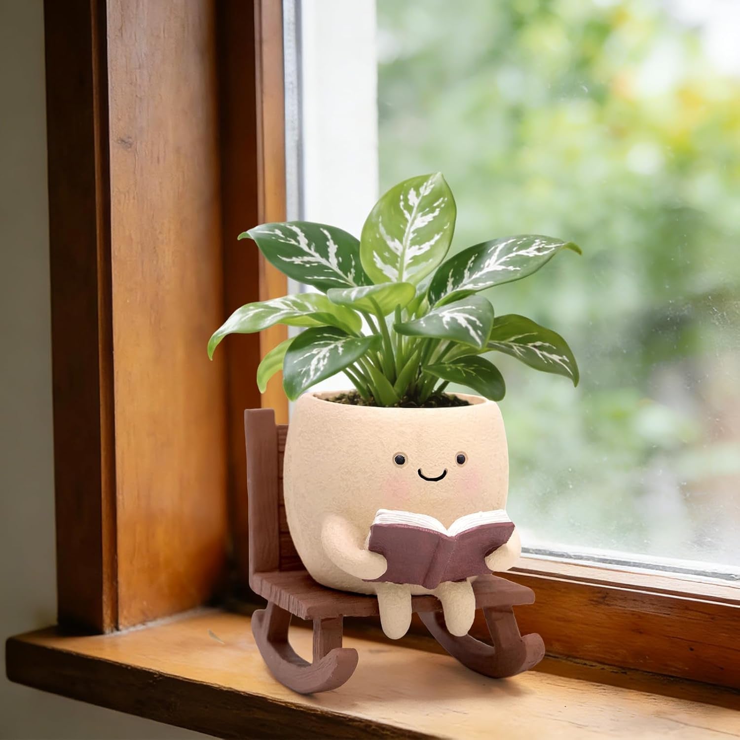 Rocking Chair Book Planter, Cute Smiley Face Succulent Plant Pots for Indoor Outdoor Plants, Unique Funny Flower Pots with Drainage Hole, Plant Gifts for Mother'S Day, Birthday, Christmas