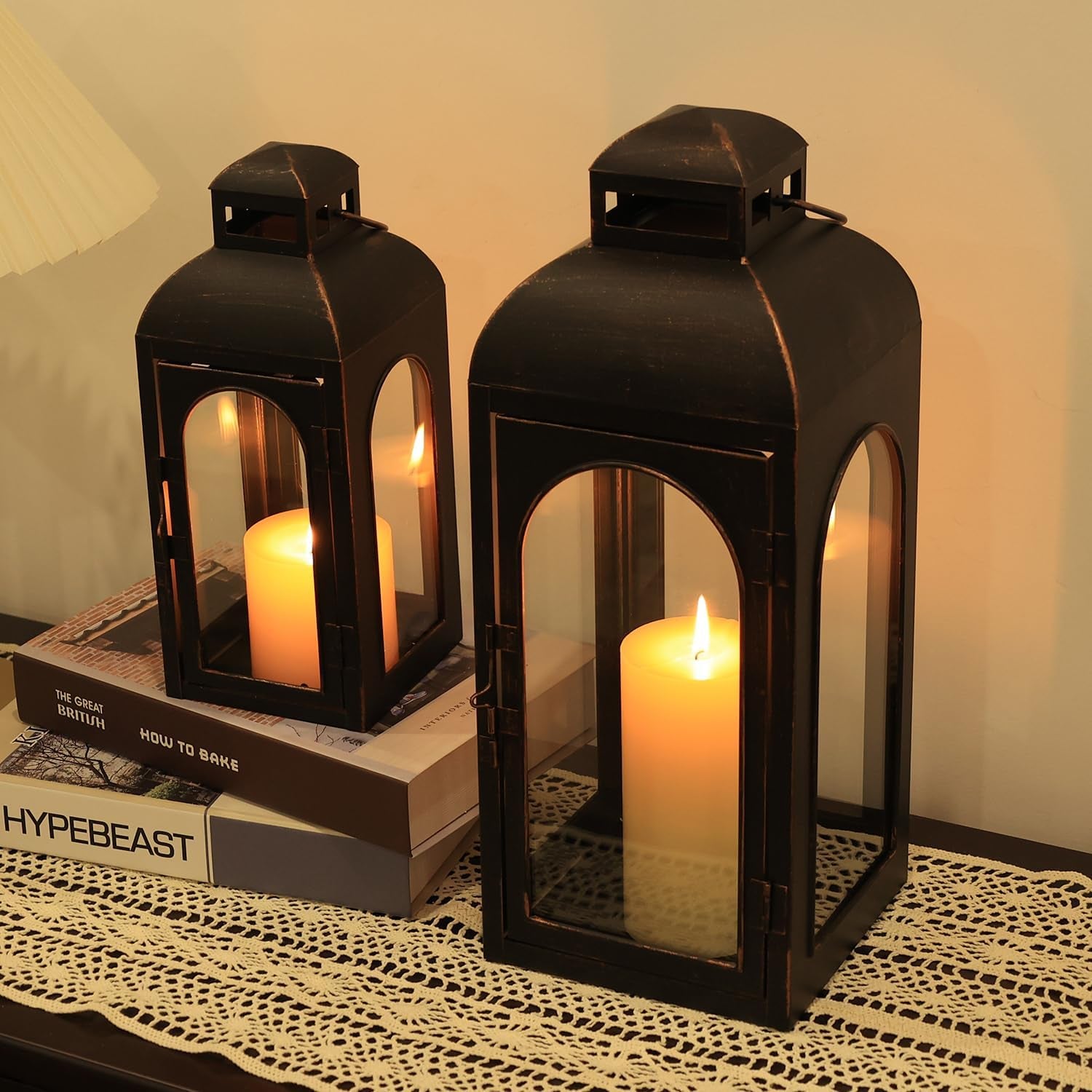 - Versatile Sizes For Every Need-This set consists of two different sized lanterns, one large and one small, to meet your different needs. Whether you're decorating a cozy living room or lighting up a festive garden party, these lanterns are perfect for creating a warm atmosphere.